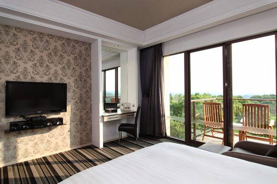 客房設施:即溶咖啡、茶包、保險箱、液晶電視、MOD影音頻道、Wi-Fi無線網路、頂級羽絨被枕、高級沐浴備品(歐舒丹備品)、免治馬桶、乾溼分離浴缸、中央空調清淨系統、落地大窗、電腦磁卡鎖